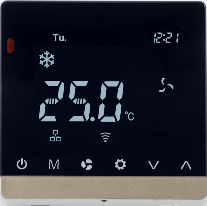 Aesthetic panel design, in ABS material with synthetic washable and removal air filter and equipped with digital LED display.